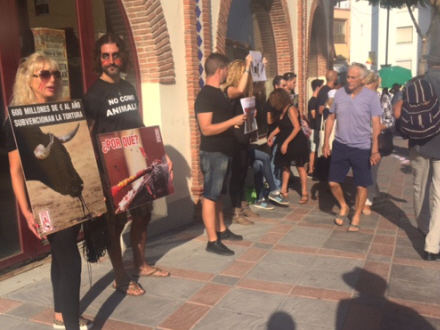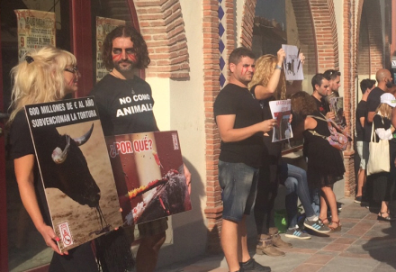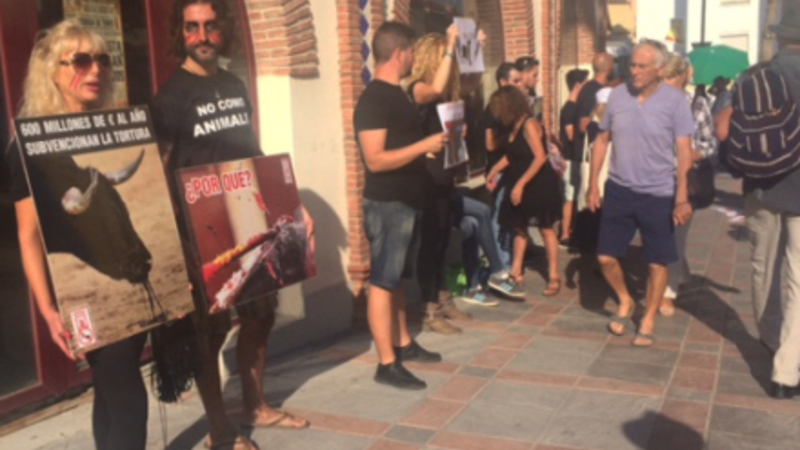 Jeg har det som om, jeg er i gang med noget ulovligt, da jeg med en hynde under armen sniger mig forbi de tavse demonstranter, der står ved indgangen til tyrefægterarenaen med rød maling i hovedet.