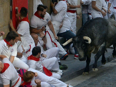 Fem amerikanere, tre spaniere og to franskmænd kom så galt afsted, at de måtte en tur på hospitalet. Kun to af dem - begge amerikanere - var rent faktisk i nærkamp med tyrene, mens de øvrige skader skyldtes styrt og fald på de regnvåde brosten.
