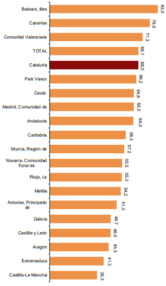Belægningsgraden i de spanske regioner