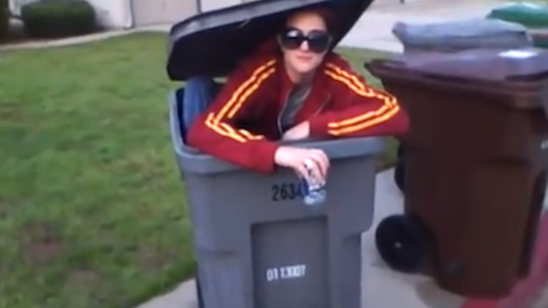 Ifølge anmeldelserne blev børnene sat ned i en skraldespand, og kun deres hoved var synligt.