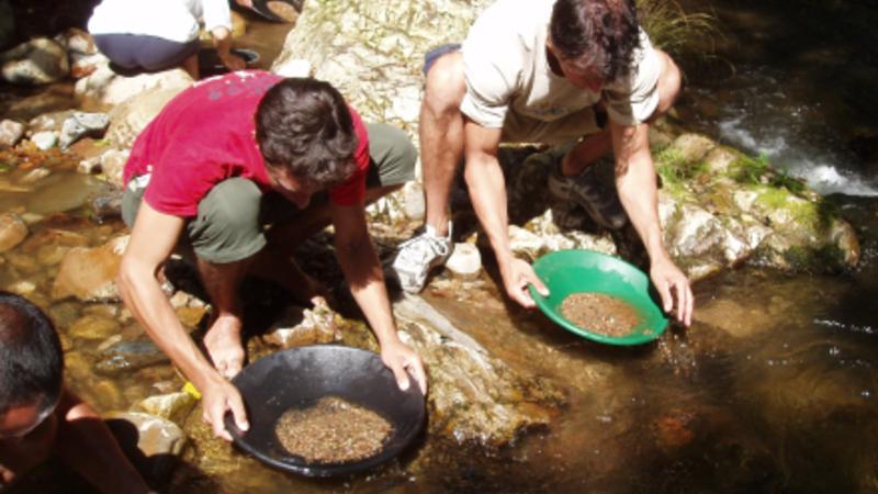 Jagten på det skinnende guld er en gammel tradition kaldet "bateo" på spansk, fordi guldjægerne bruger en panden, der hedder "batea".