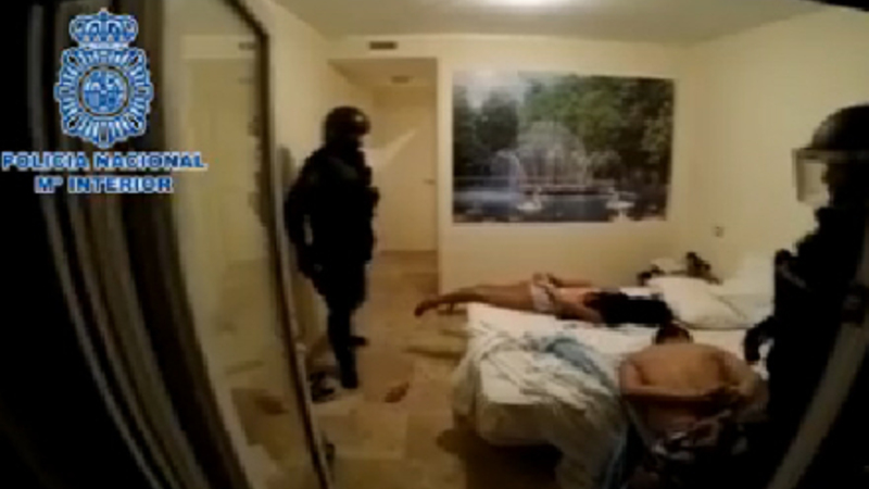 VIDEO: Det var højspændt drama, da politiet endelig kunne skride til handling på Costa del Sol. To mindre-årige er blandt de anholdte.