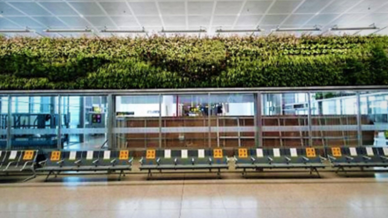 Lufthavnen i Málaga har eksempelvis opført fire levende vægge med over 10.000 planter.