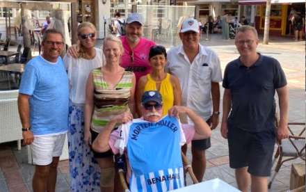 Málaga Club De Futbols eksistens blev reddet samme dag, som et hold af medlemmer fejrede Morten Møller på en restaurant i Fuengirola..