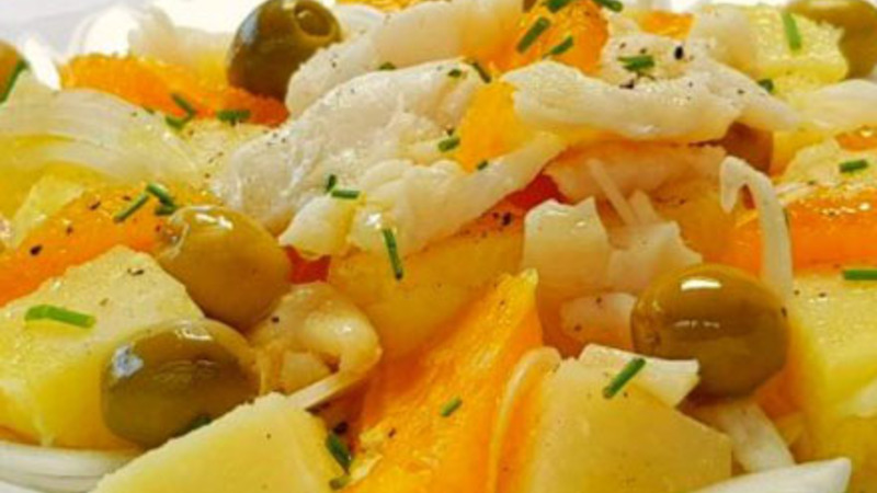 Denne salat med torsk er typisk for Málaga og andre steder i Andalusien. Torsk bruges konserveret saltet, fordi torsken, i modsætning til i dag, altid ankom til vores markeder konserveret på denne måde. Det er en salat med enkle ingredienser, der på samme tid er nærende og frisk, og i datiden økonomisk mulig for de fleste familier. Velegnet på påske og fasten, hvor katolikkerne ikke må spise kød.