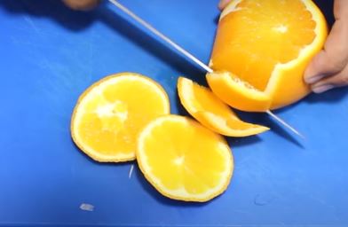 Skræl appelsinerne, så der ikke er noget tilbage af den hvide del, og skær dem i terninger.