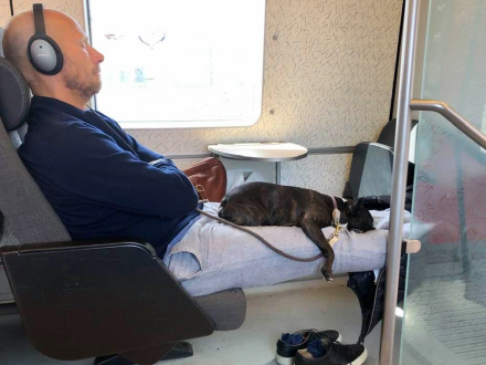 56-årige Catharina og 57-årige Hans rejser med deres bostonterrier Puyol, der i øvrigt er opkaldt efter fodboldspilleren i Barcelona.