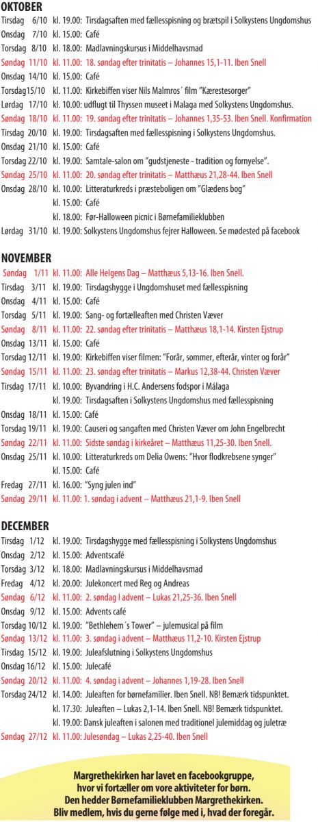 I det seneste kirkeblad kan du finde programmet for resten af året der ser sådan her ud: