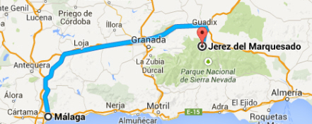 Kør forbi Granada med retning mod Baza og drej så af mod Guadix. I Guadix skal du tage afkørslen mod Jerez del Marquesado, som kommer på højre hånd, når du er kørt gennem Guadix.