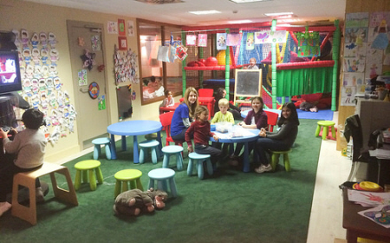 Her er der plads til børn fra fire-måneders-alderen og op til seks år, som kan spise og lege. De lidt ældre børn kan deltage i forskellige workshops.