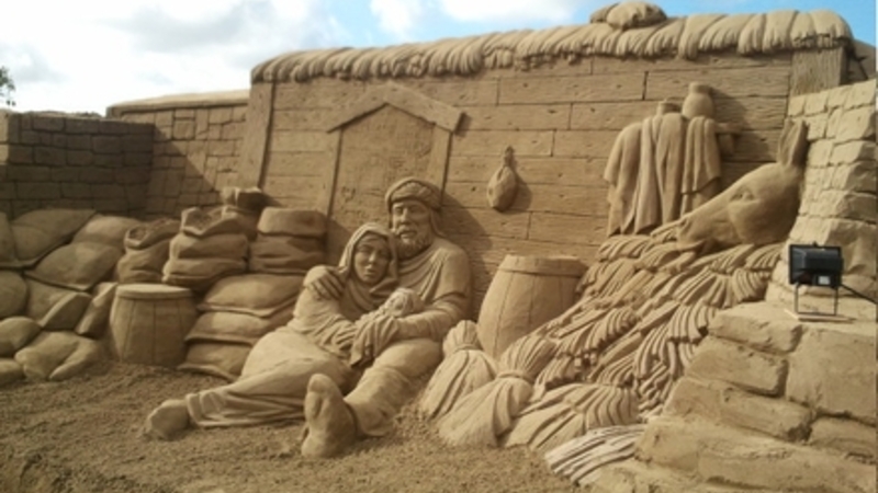 SAMFUND: Gigantisk julekrybbe bygget i sand har indsamlet rekordmange penge, og de går nu til mennesker i nød.