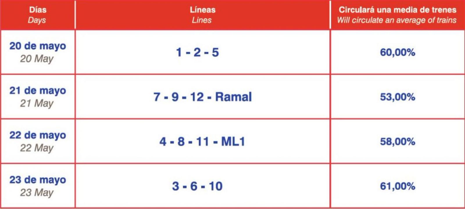 - I morgen strejkes der på linjerne 7, 9, 12 og Ópera-Príncipe Pío-linjen, og her garanteres 53 procent af afgangene at blive gennemført.
