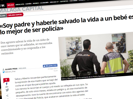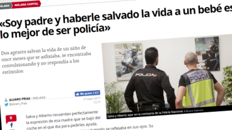Baby på 11 måneder var uhyggeligt tæt på at blive kvalt, og to betjente fra Policia Nacional reddede hans liv.