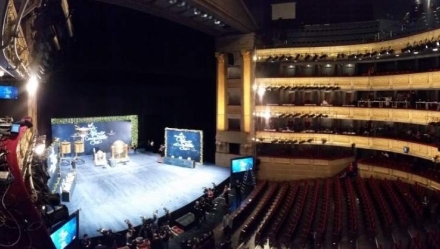 Klokken 9.09 gjorde eleverne fra San Ildefonso-skolen deres entré på Det kongelige Teaters scene. Ni piger og 12 drenge har traditionen tro opgaven med at synge numrene og de præmier, der trækkes til det pågældende nummer. Klokken 9:16 startede lodtrækningen.