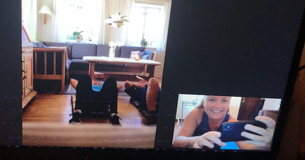 Jeg har i karantænen trænet flere gange om ugen med min far og hans kone i Danmark via videoopkald, og det ender altid med en lille snak også. Selvom jeg nu igen i nogle uger har måttet gå ture og dyrke sport udendørs, har vi holdt fast i vores træningsaftaler. Det er drønhyggeligt og jo med helt korrekt virusfri afstand.