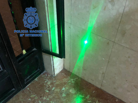 En politipatrulje fik et radioopkald fra alarmcentralen om at tage til Avenida del Cid, hvorfra flere laserlys var blevet rettet mod flyene i landingsmanøvrer i Manises-lufthavnen.