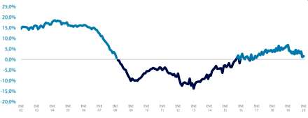 Fra januar 2002 til nu. Januar har altid ligget lavt