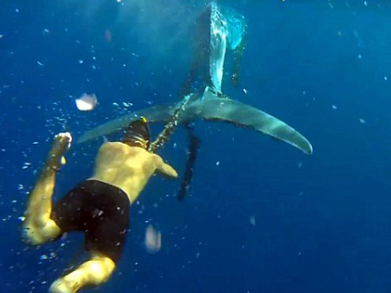 Til gengæld er det farligt for mennesker at svømme i nærheden af hvalen, for hvis man bliver ramt af dens store hale, kan man blive slået bevidstløs.