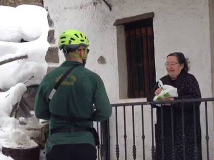 Guardia Civil-betjente trodser snestormen i Asturien og slider sig frem til en ældre medborger i Viboli, Ponga.