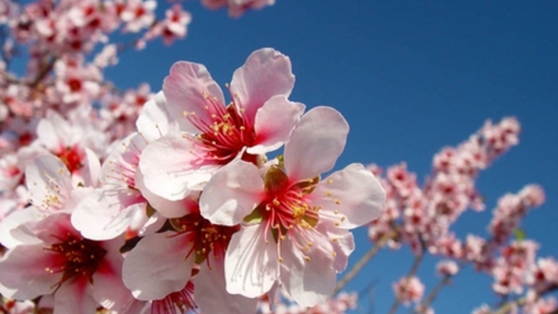 Netop nu står mandeltræerne i fuldt flor. Bjergskråningerne er dækket med et tæppe af de hvid-lyserøde blomster, der gør landskabet til det smukkeste på året.