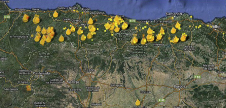 I Asturien var der over 100 brande natten til søndag efter at der kun var omkring 18 registrerede brande lørdag morgen. I Cantabrien har der været mindst 40 brande.