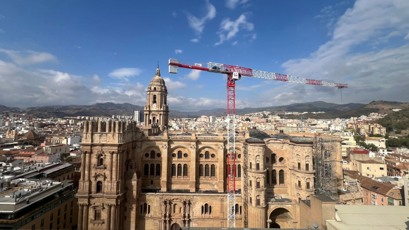 Arbejdet med at samle træspærerne startede for to uger siden. Stykkerne blev løftet op på toppen af bygningen af den 65 meter høje kran, der i mange måneder har tronet i sin fulde højde på sidegaden Postigo de los Abades.