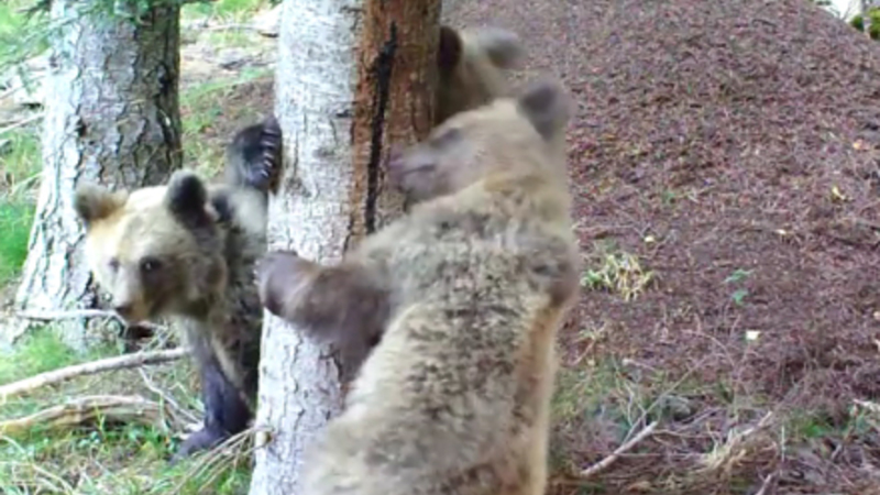 De tre nuttede bjørneunger blev filmet i Alt Pirineu National Park i Catalonien.