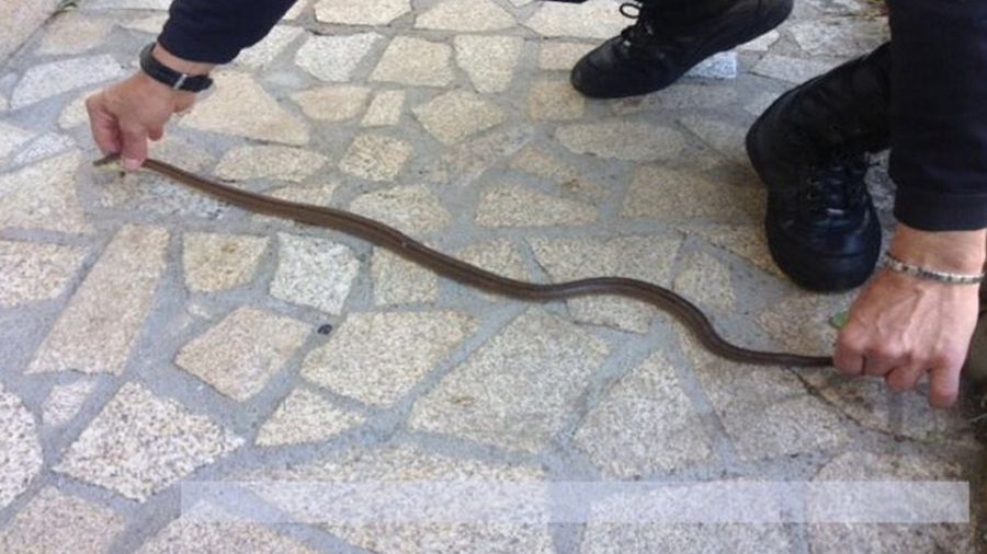 Miljøenheden fra lokalpolitiet, Umir, fandt den lange slange. Ifølge eksperterne sker det ofte, når det begynder at blive varmere i forstæderne, at nogle slanger nærmer sig boliger og haver.