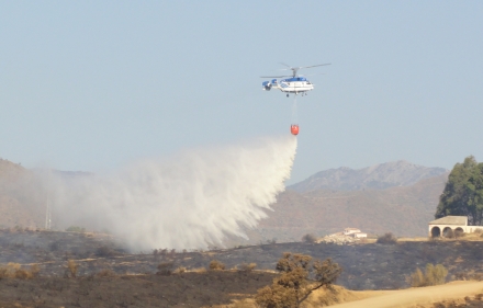 Helikopterne fyldte deres vandkugler fra søen i Mijas Golf og vanddepotet ved avocado-lunden vest for La Cala Hills.