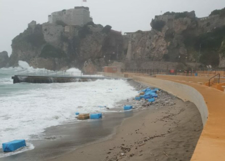 Havet har allerede vist muskler, og politiet på Gibraltar har indsamlet 30 baller hash her til formiddag på Cam Bay-stranden