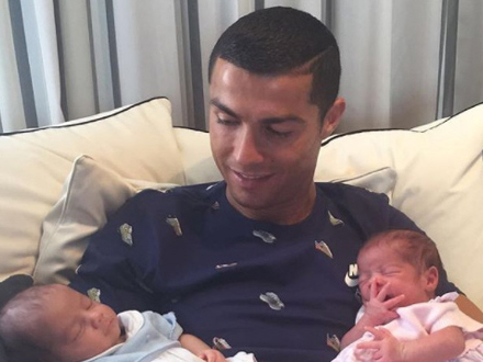 Et par timer efter for første gang at have talt om sine nyfødte børn, Eva og Mateo, delte Cristiano Ronaldo et billede med sine fans på det sociale medie Instragram: Det første billede af tvillingerne.