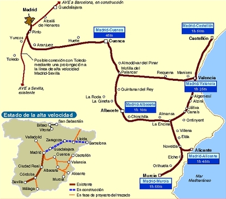 Den 20. marts indledes prøvekørslerne mellem Castellón og Valencia, som vil forbinde højslettens hovedstad med hurtigtoget. Det reducerer rejsetiden mellem Castellón og Madrid med en halv time. Strækningen til Valencia er på 74 kilometer, og der er brugt 173 millioner euro på anlægsarbejdet.