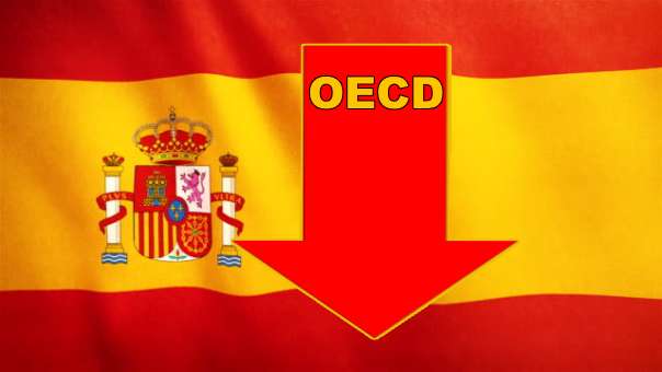 OECD fastholder, at den spanske økonomi kun vil vokse med 4,5 % i år, hvilket er et fald i Bruttonationalproduktet - BNP - der er langt fra OECD's seneste skøn offentliggjort i september.