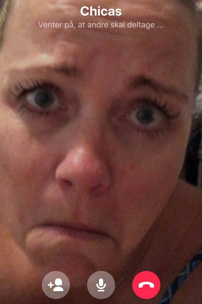 At sidde inde alene kan hurtigt gøre én lidt kulret, og i går aftes tog en af veninderne en hurtig beslutning. Vi har chatgruppen 'Chicas' på facebook, og herfra kan man videochatte med hinanden.