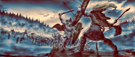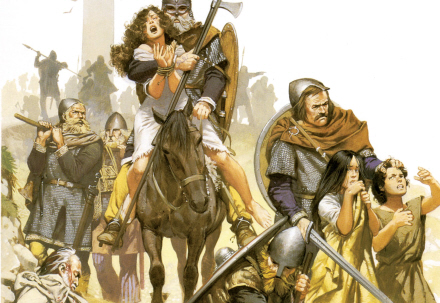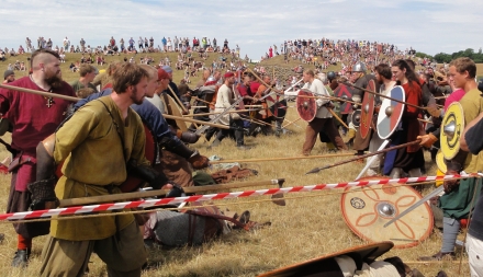 Med råbene "Vikingerne kommer for at dræbe" bliver sværdene trukket, og med malede ansigter under hjelmene starter kampen mellem de invaderende barbarer og lokale.