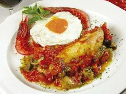 For at være tro mod den oprindelige opskrift er det eneste, der er tilbage, at stege æggene sprøde og servere et par stykker kylling, tre krkrebs, sovsen og det stegte æg.
