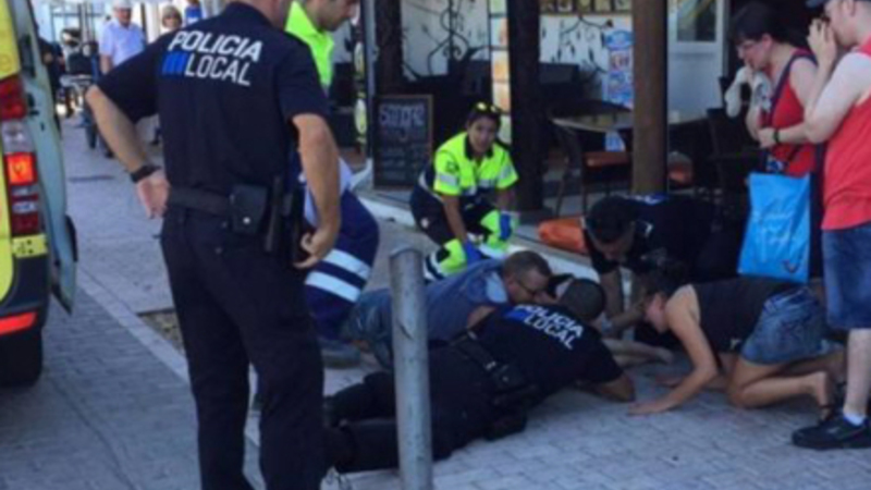 En betjent, der havde fri, stormede til og hurtigt kom to uniformerede betjente også løbende. Sammen satte de hurtigt gang i genoplivning. Det skriver Diariodemallorca.es