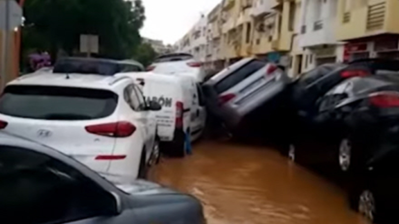 VIDEO: Veje forvandlet til floder, biler trukket væk, boliger under vand. For en uge siden knoklede brandfolk mod flammehav i Sydspanien, og mens branden endnu ikke er erklæret for slukket, knokler man nu med et ganske andet element.