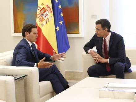 I rækken af Pedro Sánchez sonderinger med partilederne om overordnede statslige forhold, var det i går formiddags Albert Riveras tur til drøftelse efter at være blevet Kongressens tredjestørste parti med 57 mandater.