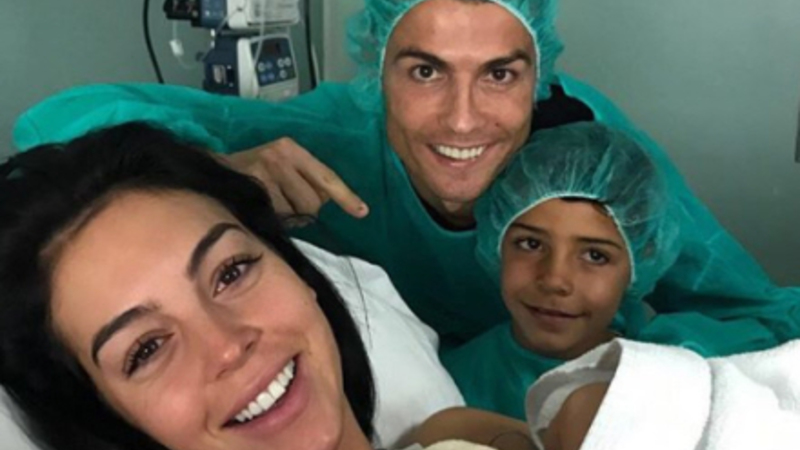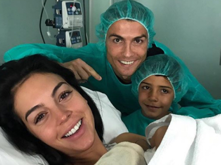Den portugisiske fodboldspiller offentliggjorde familieforøgelsen på sin Instagram-profil med et billede af ham, hans ældste søn og den smukke kæreste, der nænsomt holder den nyfødte. Far og søn er ens klædt i de grønne hospitalskåber.