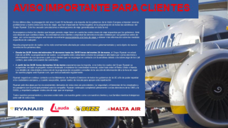 Ryanair lukker ned