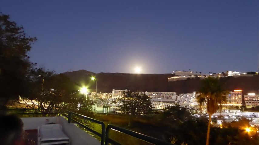 På Gran Canaria var det en anden sag. En af vores læsere Henning Schouw sidder i Puerto Rico på Gran Canaria, og han havde første parket til showet fra første øjeblik, da månen stod op. Det sidste billede blev taget klokken 20:03 lokal tid: