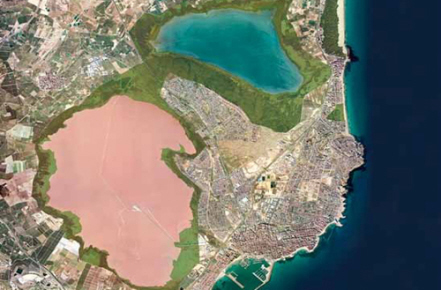 Mens den mindste af de to er blågrøn det meste af året, har den største af dem, lagunen i Torrevieja, altså fået sit navn på grund af den karakteristiske farve. Årsagen er pigmentering fra de alger og bakterier, der lever i vandet.