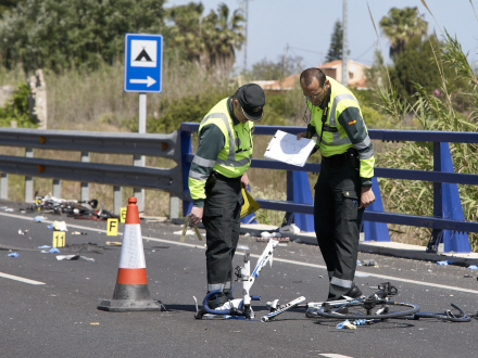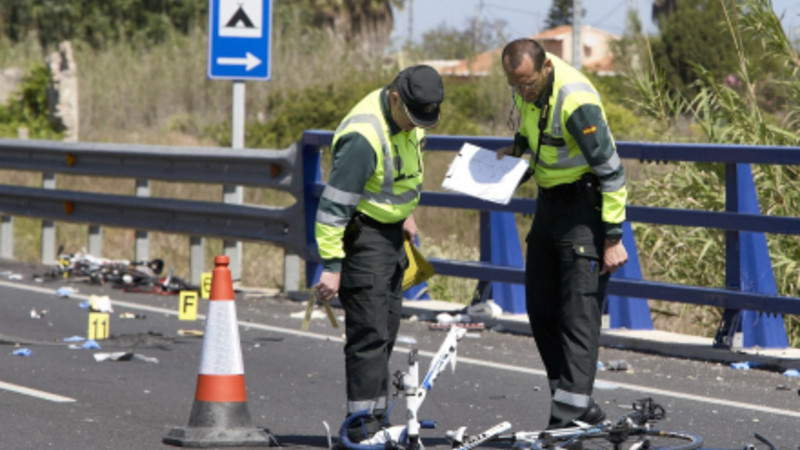 Søndag morgen, klokken er ikke ni endnu, men solen er stået op. Seks venner kommer cyklende på N-332 nær Oliva i Valencia. De er altid ude at cykle og få motion om søndagen.