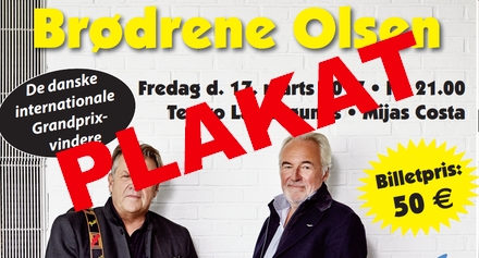 La Peña de Dinamarca arrangerer koncert med Brødrene Olsen fredag den 17. marts kl. 21.00 i Teatro Las Lagunas ved Fuengirola.