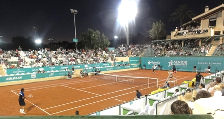 Scenariet for forestillingerne var fantastisk på den flotte opvisningsbane - nej scene - i Puente Romano Tennis Club på den Gyldne Mil mellem Marbella og Puerto Bánus.