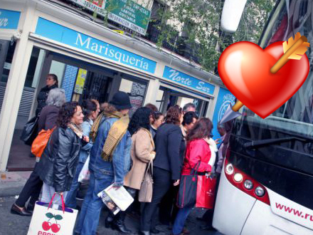 Kvinder i alderen fra knap 30 til 60 fra hele Madrid-området og sågar fra udlandet bliver smidt på bus og sendt på landet. Omkring 50 kvinder har hver betalt 20 euro for at være med i Kærligheds-karavanen, som bussen kaldes.