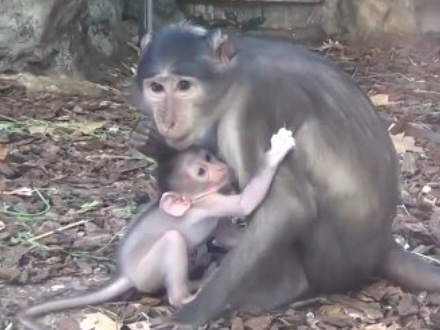 VIDEO: Truet mangabey-abe er kommet til verden i Barcelona Zoo, og det er en bette sulten fyr.