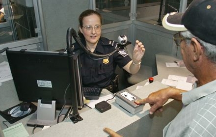 En indrejsende registreres i lufthavnen i San Francisco med både elektronisk fingeraftryk og pupil-scanning