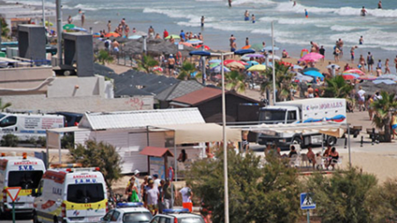 Badende gæster måtte hjælpe manden op af vandet, da Torrevieja Kommune stadig ikke har fået en aftale på plads med livreddere, og derfor er der heller ingen information om, hvornår det kan være farligt at svømme.